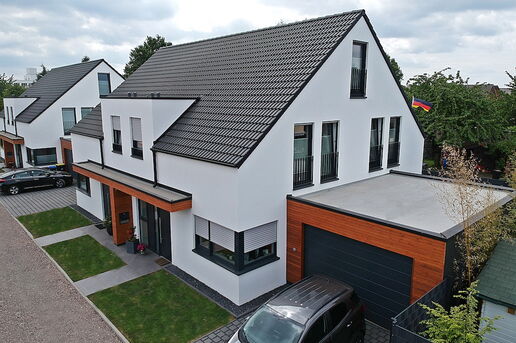 In diesem Baugebiet können wir wieder unter Beweis stellen, wie gut der Einklang aus moderner Architektur und ökologischer Bauweise funktioniert. Mit Liebe zum Detail und einer ganzen Menge Fleiß ist das Ziel, das letzte Haus bereits in ein paar Monaten fertig zu stellen und den Bauherren zu übergeben.
