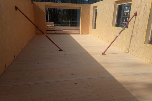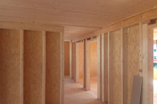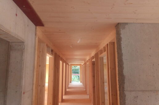 Dieses Bauvorhaben wurde in modernster Holzrahmenbauweise errichtet. Die Geschossdecken wurden aus Massivholz Brettstapelelementen gefertigt, somit wird neben der schnellen Montagezeit, höchster Schallschutz und ein großartiges Raumklima gewährleistet.