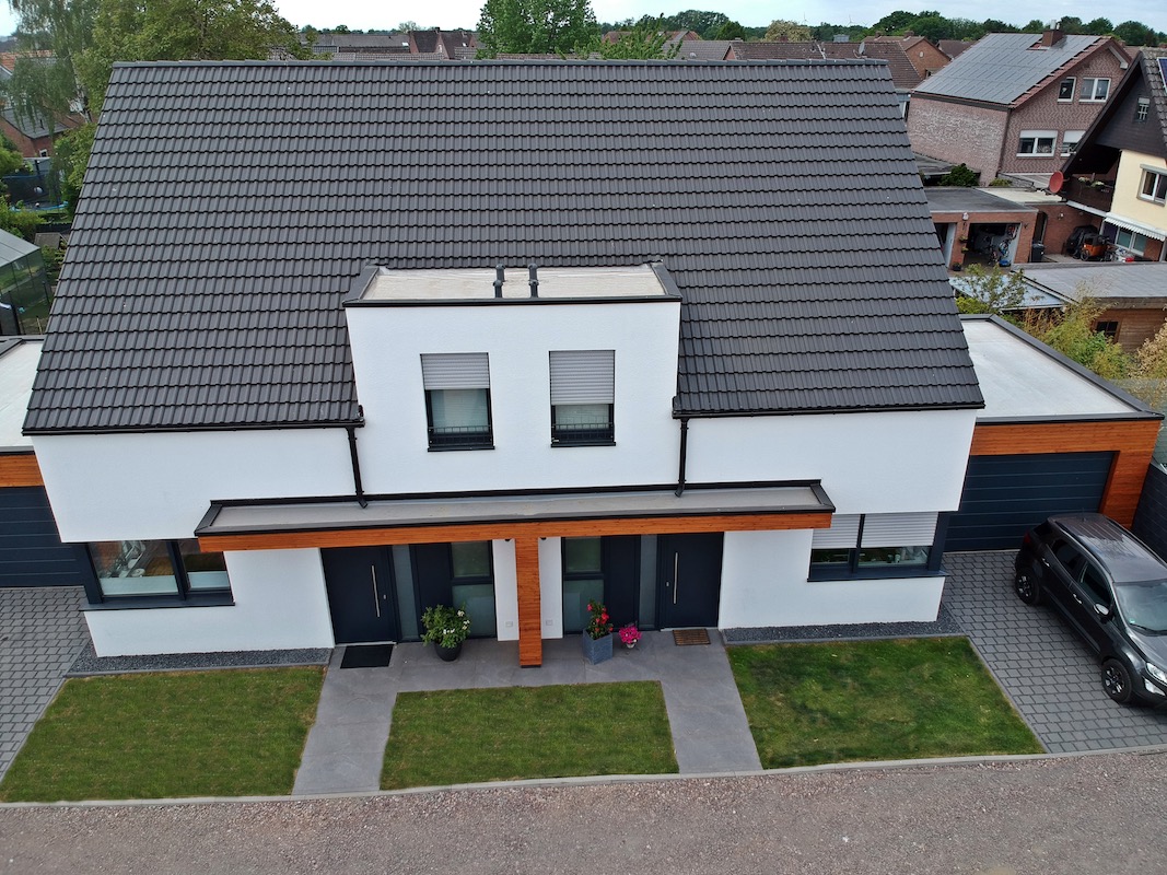 In diesem Baugebiet können wir wieder unter Beweis stellen, wie gut der Einklang aus moderner Architektur und ökologischer Bauweise funktioniert. Mit Liebe zum Detail und einer ganzen Menge Fleiß ist das Ziel, das letzte Haus bereits in ein paar Monaten fertig zu stellen und den Bauherren zu übergeben.