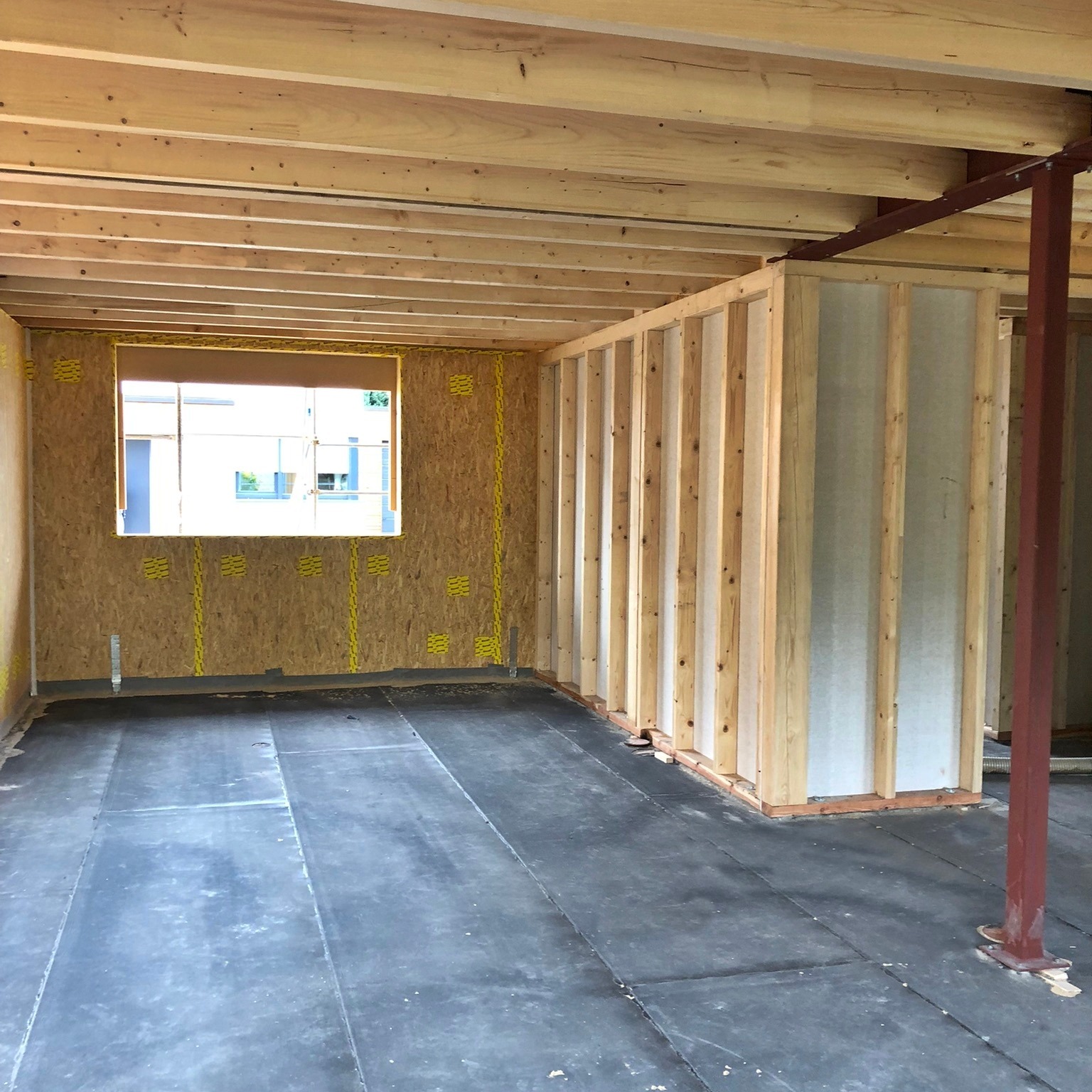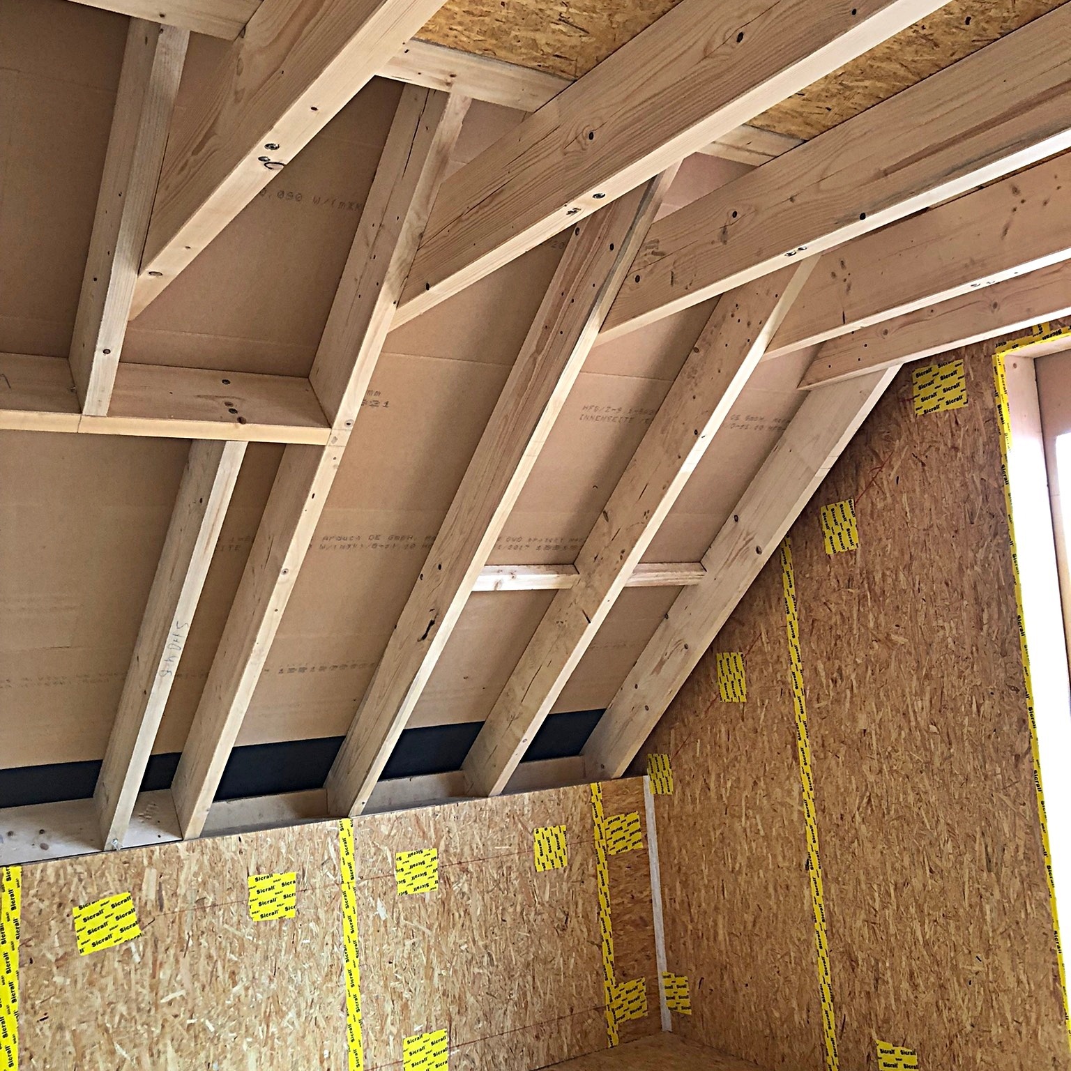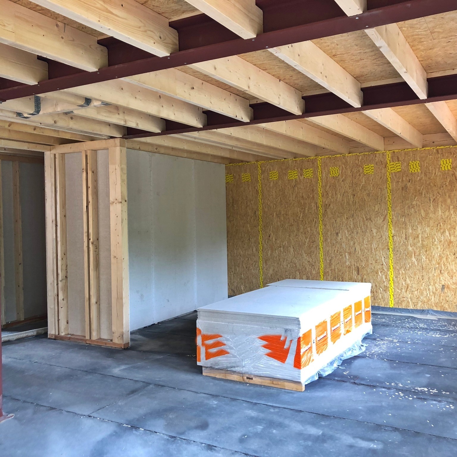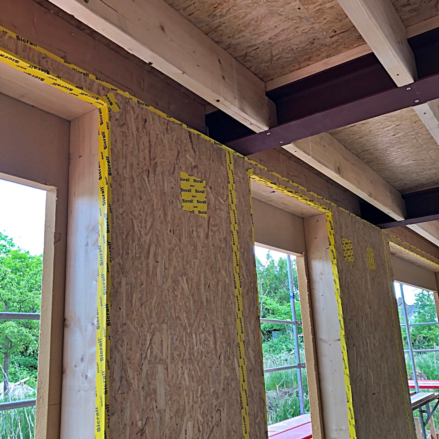 In diesem Baugebiet werden von uns ausschließlich Häuser in ökologischer Holzrahmenbauweise erstellt. Mittlerweile ist das vierte der insgesamt fünf Ein- und Mehrfamilienhäuser aufgestellt.