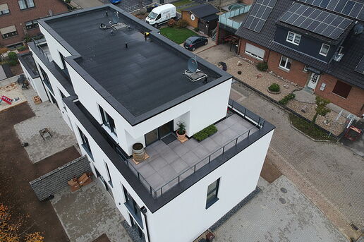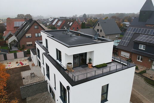 Dieses Bauvorhaben in Krechting hat unser Dachdecker-Team mit den Flachdach- und Blecharbeiten verschönert. Gerade bei Flachdächern ist es besonders wichtig, dass die Arbeiten gewissenhaft und sauber ausgeführt werden, da es sonst zu unschönen Leckagen kommen kann.