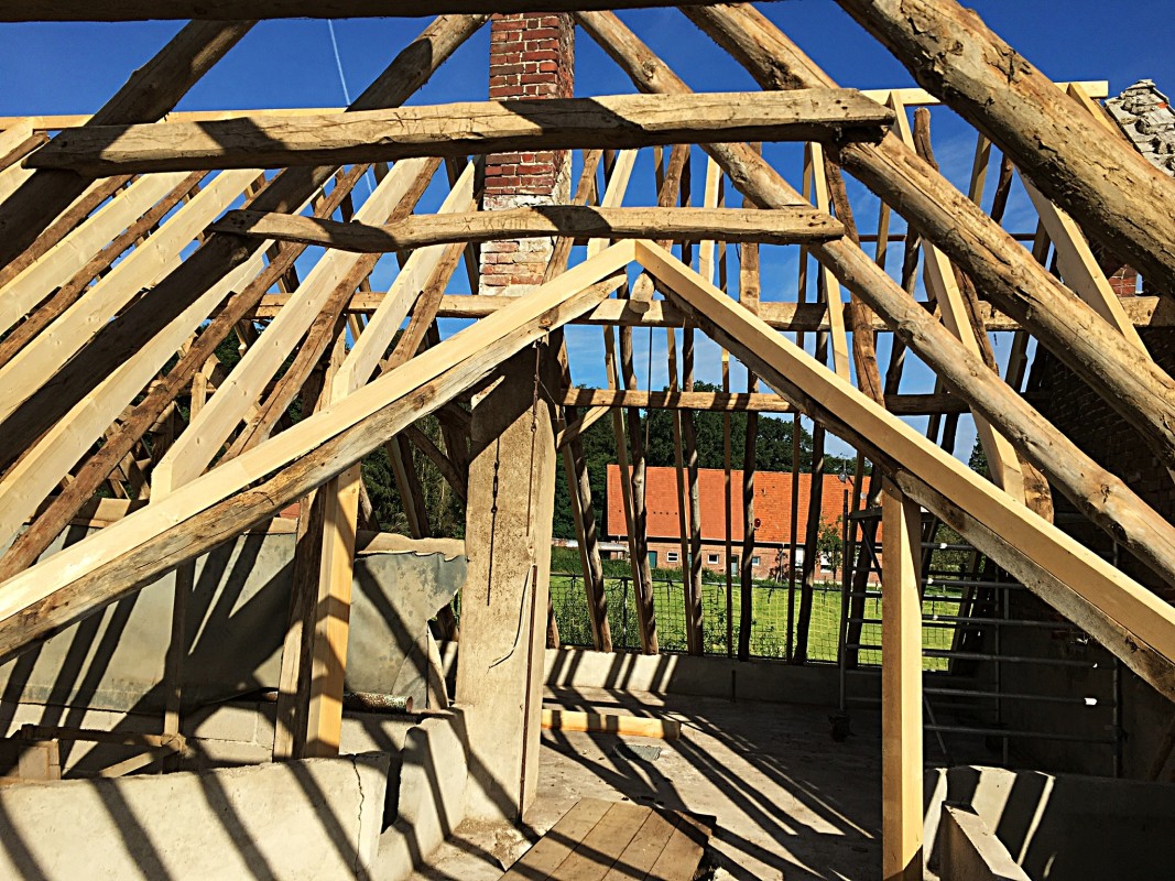 So wurde dieser Bestandsdachstuhl vollständig erhalten und lediglich durch neue Hölzer ertüchtigt, um den neuen Wohnraum eine Grundlage an die heutigen Ansprüche zu geben.