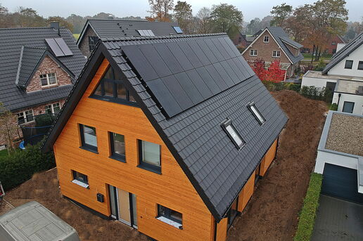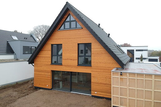 Dieses Bauvorhaben auf dem Phönix-Gelände in Bocholt durften wir als Generalunternehmer für den schlüsselfertigen Hausbau in Holzrahmenbauweise ausführen. Den Bauherren war es hier besonders wichtig, mit ökologischen und nachhaltigen Baustoffen zu arbeiten. Sie entschieden sich für eine Holzfassade, wodurch das Haus zu einem echten Hingucker geworden ist.